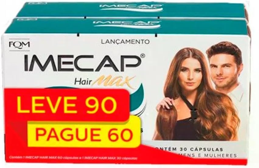 Em até 1x de R$136,88 sem jurosEm até 12x de R$12,94 com juros À vistaR$123,19no PixImecap Hair Max Kit 60 + 30 Cápsulas – Vitaminas para Cabelos e Unhas com Cisteína