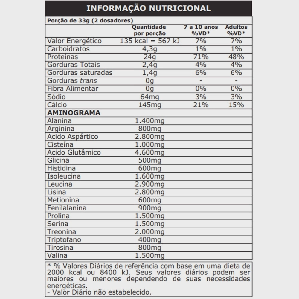 Olá Parceiro(a)! Você está adquirindo um produto 100% Original, somos Distribuidores da marca a mais de 10 anos no mercado com 100% de reputação positiva. Todas as nossas mercadorias são comercializadas com NFe para garantir o compromisso com a credibilidade de nossos produtos. Ótimas compras! whey 100% pure suplemento proteico composto pela Proteína Concentrada do Soro de Leite (Whey Protein Concentrate), matéria-prima elaborada com alta tecnologia e elevada concentração de aminoácidos. De preparo instantâneo, 100% pure whey é indicado para ser tomado antes e/ou após os exercícios. benefícios 21g de proteína por porção Alto teor de proteínas 4.573mg de BCAA** por porção As proteínas auxiliam na formação dos músculos e ossos **Aminoácidos naturalmente presentes nas proteínas do produto. modo de preparo Para o preparo de uma porção, misture 40g (2 dosadores) do produto em 200mL (1 copo) de sua bebida preferida (água gelada, leite desnatado, etc). sugestão de uso: Utilize de uma a duas porções ao dia, ou conforme orientação de nutricionista ou médico ingredientes baunilha: Proteína concentrada do soro do leite (wpc), emulsificante lecitina de soja*, aromatizantes, espessante goma xantana e edulcorante sucralose. não contém glúten. contém derivados de leite E soja. pode conter derivados de ovo. *utilizada na fabricação da proteína do soro do leite com a função de deixar o produto instantâneo (fácil diluição). ingredientes chocolate Proteína concentrada do soro do leite (wpc), cacau alcalino, aromatizantes, emulsificante lecitina de soja*, espessante goma xantana e edulcorante sucralose. não contém glúten. contém derivados de leite E soja. pode conter derivados de ovo. *utilizada na fabricação da proteína do soro do leite com a função de deixar o produto instantâneo (fácil diluição). ingredientes morango Proteína concentrada do soro do leite (wpc), aromatizante, emulsificante lecitina de soja*, acidulante ácido cítrico, espessante goma xantana, edulcorante sucralose e corantes artificiais amaranto e azul brilhante fcf. não contém glúten. contém derivados de leite E soja. pode conter derivados de ovo. *utilizada na fabricação da proteína do soro do leite com a função de deixar o produto instantâneo (fácil diluição). ingredientes cookies Proteína concentrada do soro do leite (wpc), cookies sabor chocolate sem adição de açúcares (farinha de trigo enriquecida com ferro e ácido fólico, gordura de palma, cacau em pó, fécula de mandioca, sal, estabilizante polidextrose, edulcorantes sorbitol e sucralose, fermentos químicos bicarbonato de sódio e pirofosfato ácido de sódio, aromatizante e emulsificante lecitina de soja), granulado de chocolate (açúcar, gordura vegetal, cacau em pó, sal, espessante goma arábica, emulsificante lecitina de soja, corante artificial vermelho 40 e aromatizante), cacau alcalino em pó, sal, aromatizantes, espessante goma xantana e edulcorante sucralose. contém glúten. contém derivados de leite, soja E trigo. pode conter ovo, amendoim, aveia, avelã, C A S T A N H A – D E – C A J u, castanha-do-pará, centeio, cevada, macadâmia E nozes. importante: este produto não substitui uma alimentação equilibrada E seu consumo deve ser orientado por nutricionista ou médico. anvisa: registro isento conforme resolução rdc 27 de 06 de agosto de 2010 anexo i.