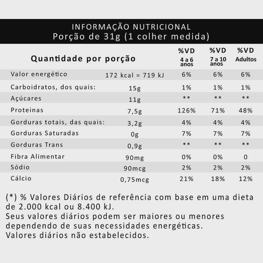 Disponível nos deliciosos sabores de baunilha, chocolate e Frutas Vermelhas.